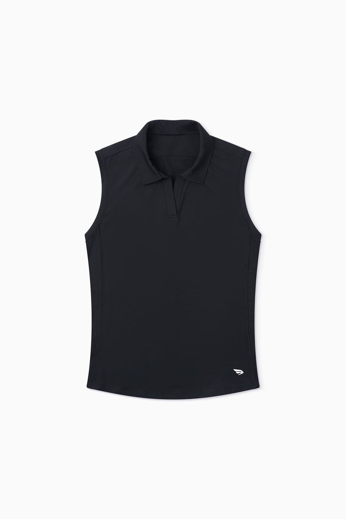 The Olivia is a refined sleeveless top with an open collar, high-low cut, and tulip...