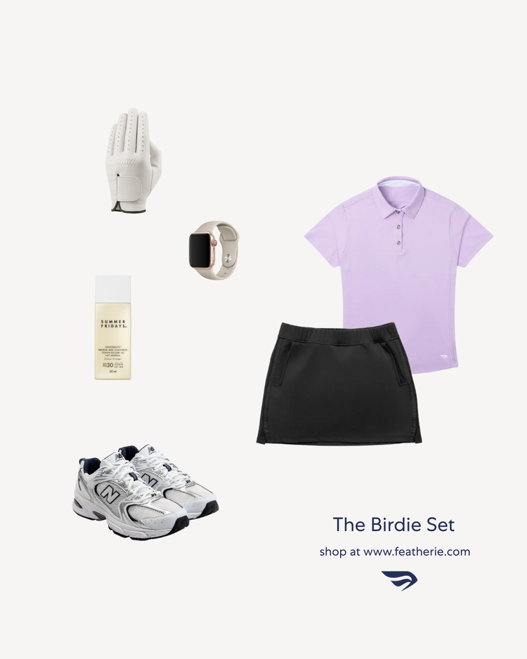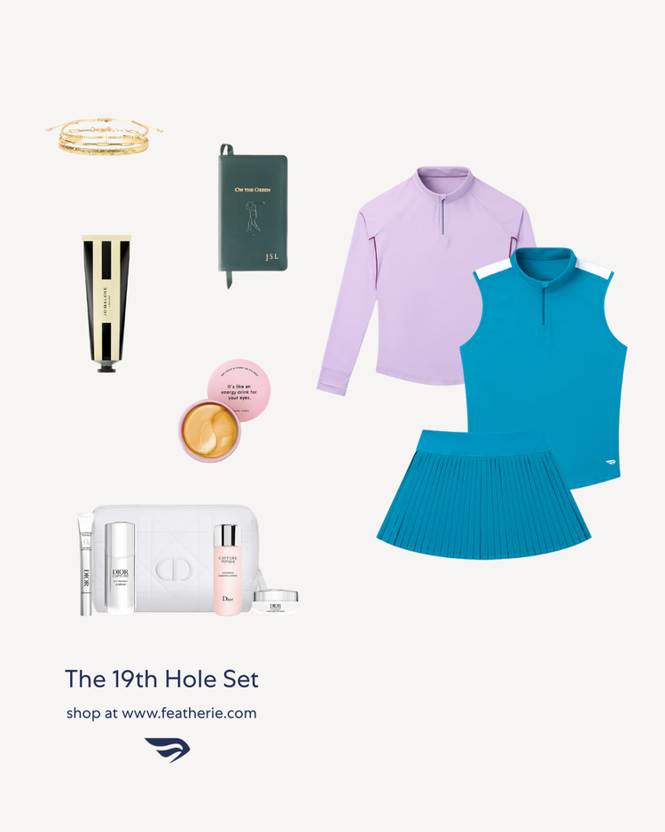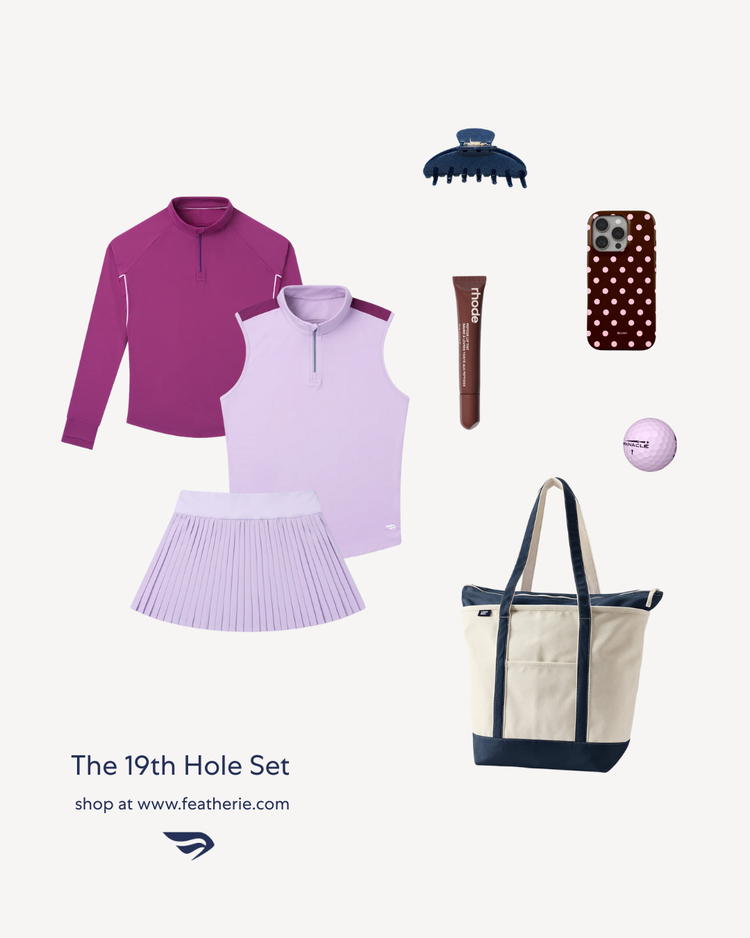 Soft, flirty, and designed for post-round hangs. This set includes the Erin Half-Zip Sleeveless, Michelle Pleated Skort, and the Taylor Long-Sleeve Half-Zip to make the perfect outfit formula for a flirt-meets-functional golf uniform. The perfect set for recording your much-improved golf swing or taking selfies in the golf cart.