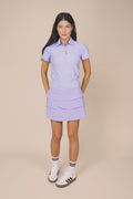 A modern take on the classic polo, the Lexi pairs a feminine fit with a tulip hem, contrast piping, and subtle silver buttons.